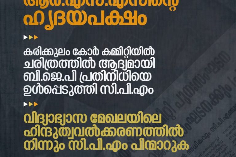 തിരുവനന്തപുരം: കരിക്കുലം കോർ കമ്മിറ്റിയിൽ ബി ജെ പി പ്രതിനിധിയെ ഉൾപ്പെടുത്തിയ നടപടിയിൽ നിന്നും സംസ്ഥാന സർക്കാർ പിന്മാറണമെന്ന് ഫ്രറ്റേണിറ്റി…