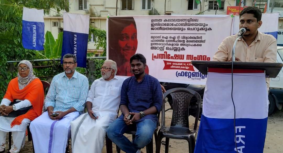 കൊല്ലം: ഐ ഐ ടി വിദ്യാര്ത്ഥിനി ഫാത്തിമ ലത്തീഫിന്റെ മരണത്തിന് ഉത്തരവാദികളായ അധ്യാപകര്ക്ക് നേരെ കൊലപാതകത്തിന് കേസ് എടുക്കണമെന്ന് വെല്ഫെയര് പാര്ട്ടി ജില്ലാ പ്രസിഡന്റ് അബ്ദുല് അസീസ് പാരിപ്പള്ളി. ഫ്രറ്റേണിറ്റി മൂവ്മെന്റ് ജില്ലാ കമ്മിറ്റി ചിന്നകടയില് സംഘടിപ്പിച്ച പ്രതിഷേധ പരിപാടി ഉദ്ഘാടനം ചെയ്തു സംസാരിക്കുകയായിരുന്നു അദ്ദേഹം.ഫാത്തിമയുടെ മരണത്തിന് ഉത്തരവാദികളായവരെ നിയമത്തിന് മുമ്പില് കൊണ്ട് വരണം സമാനമായാ സംഭവങ്ങള് ആവര്ത്തിച്ചുകൊണ്ടിരിക്കുന്ന സാഹചര്യത്തില് രോഹിത് ആക്ട് നടപിലക്കണം ജാതീയതയുടെയും ഇസ്ലാമോഫോബിയയുടെയും സ്ഥാപനവത്കൃത കൊലപാതകങ്ങളുടെ ഭീതിദമായ സാഹചര്യത്തിലേക്കാണ് ഇത് വീണ്ടും വിരല്ചൂണ്ടുന്നത്. രോഹിത് വെമുലക്കും പായല് തദ്വിക്കും ശേഷം സമര്ത്ഥയായ ഒരു വിദ്യാര്ത്ഥിനി കൂടി ഇതിനിരയായിരിക്കുകയാണ്. ഈ സാഹചര്യത്തില് രോഹിത് ആക്ട് നടപിലകേണ്ടതിന്റെ ആവശ്യകതയും അദ്ദേഹം വ്യക്തമാക്കി. ഫ്രറ്റേണിറ്റി മൂവ്മെന്റ് ജില്ലാ പ്രസിഡന്റ് എസ്.എം മുഖ്താര് അദ്ധ്യക്ഷത വഹിച്ചു.