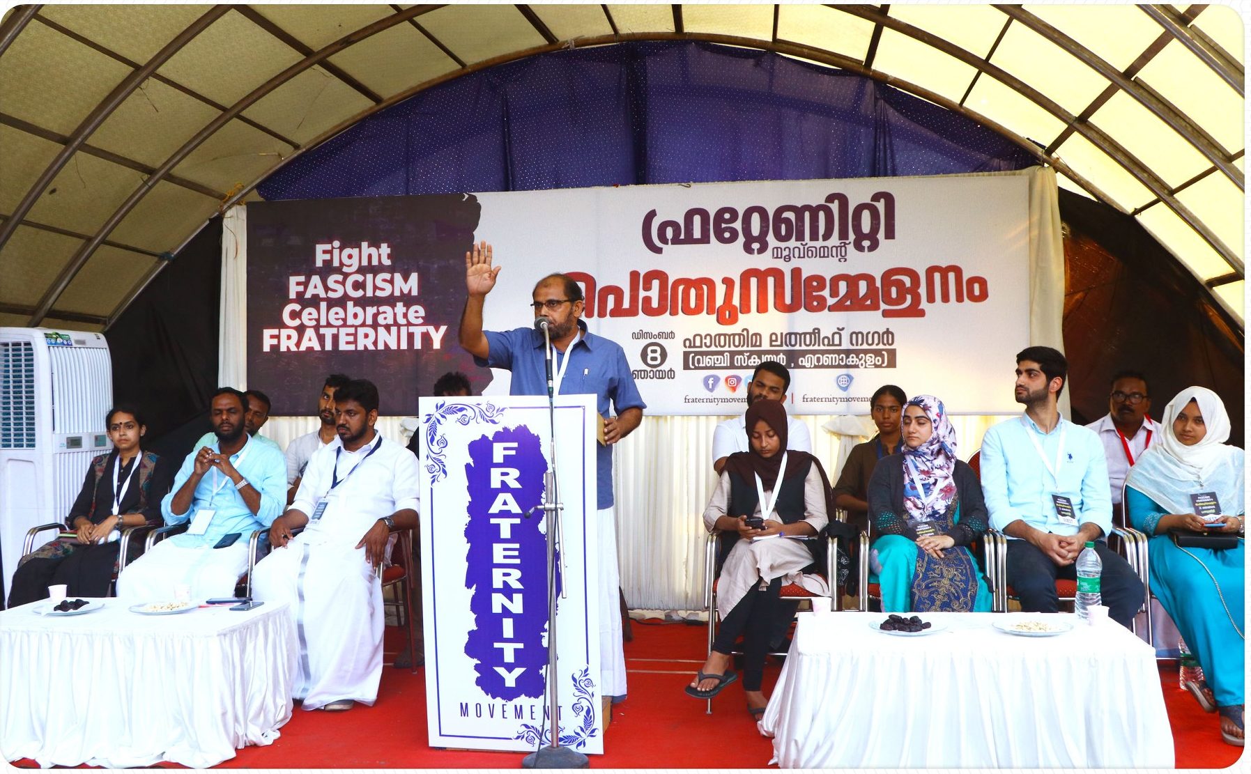 ഇന്ത്യന് കാമ്പസുകളില് – പ്രധാനമായും കേന്ദ്രസര്വകലാശാലകളില്- സംഘപരിവാറും അവരുടെ വിദ്യാര്ത്ഥി സംഘടനകളും നേതൃത്വം നല്കുന്ന ഫാസിസ്റ്റ് രാഷ്ട്രീയത്തെ ചോദ്യം ചെയ്തും അത്തരം പോരാട്ടങ്ങള്ക്ക് രാജ്യത്തെ വ്യത്യസ്ത സര്വകലാശാലാ കാമ്പസുകളില് നേതൃത്വം നല്കി വരുന്ന വിദ്യാര്ത്ഥി പോരാളികള്ക്ക് സ്വീകരണമൊരുക്കിയും ഫ്രറ്റേണിറ്റി മൂവ്മെന്റ് സംസ്ഥാന കമ്മിറ്റി സംഘടിപ്പിച്ച പൊതുസമ്മേളനം ശ്രദ്ധേയമായി. 2019 ഡിസംബര് എട്ടിന് വൈകുന്നേരം ഫാത്തിമ ലത്തീഫ് നഗര് എന്ന് നാമകരണം ചെയ്യപ്പെട്ട എറണാകുളം വഞ്ചി സ്ക്വയറിലാണ് പരിപാടി സംഘടിപ്പിക്കപ്പെട്ടത്. ‘Fight Fascism, Celebrate Fraternity’ എന്നതായിരുന്നു സമ്മേളന പ്രമേയം. കേന്ദ്ര സര്വകലാശാലകളില് പൊതുവില് നിലനില്ക്കുന്ന ബ്രാഹ്മണിക് വലതുപക്ഷ രാഷ്ട്രീയത്തിന്റെ മറുവശത്തുള്ളത് വരേണ്യ ഇടതുപക്ഷമാണ്. ഈ രണ്ടിനെയും ‘പ്രബുദ്ധ’ രാഷ്ട്രീയമായി പൊതുസമൂഹം കാണുകയും ചെയ്യുന്നു. അതിന്റെ ഒരു പൊളിച്ചെഴുത്ത് കൂടിയായിരുന്നു ഈ ഒത്തുചേരലും അതിലെ മുദ്രാവാക്യങ്ങളും പ്രഭാഷണങ്ങളുമെല്ലാം.